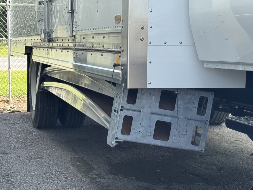 Rear slideout-only ramps involve more finger-smashing possibilities, but we can also install the Magliner frame-rail mounted slide out ramps (ie Uhaul-style.) In this case, we must build up the body a bit to accommodate. Since most move crews prefer a lower floor height and need a board that works at each door, Melchers remain the go-to standard for a reason. Rest assured, we’ll build and supply what you need.